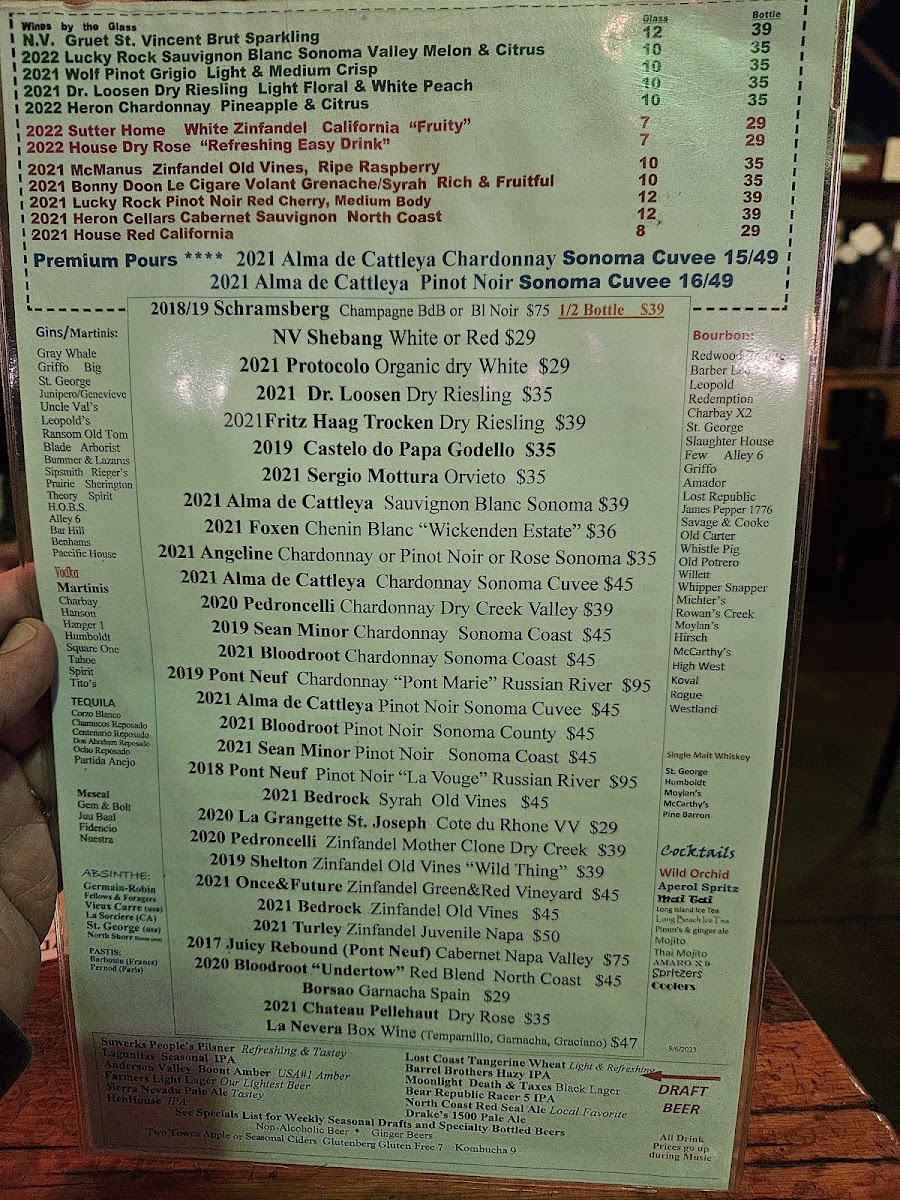 For those who seek a lighter option, the grilled chicken salad offers a refreshing reprieve, while the fish tacos promise a burst of coastal flavors, keeping your palate entertained. And let’s not forget the bar – overflowing with choices ranging from local wines to inventive cocktails like the Wine Country Sour and Cucumber Crush, perfect for winding down after a day of exploring Calistoga.