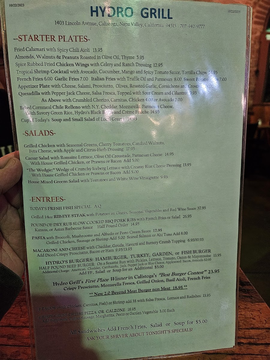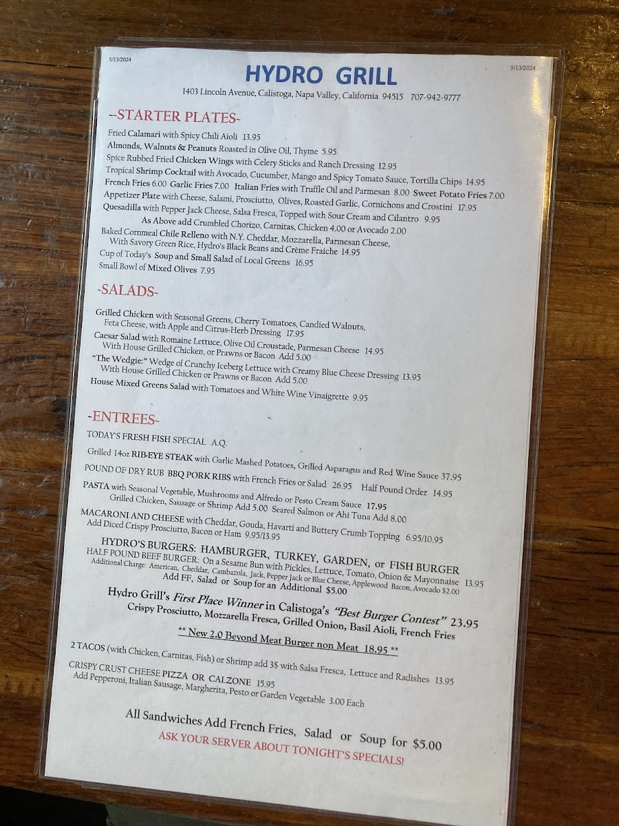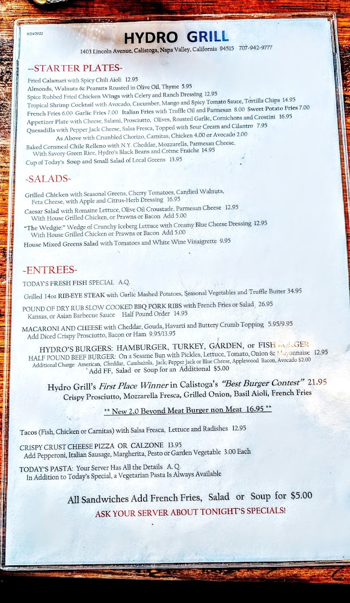 Whether you’re a local or just passing through, Hydro Grill's commitment to quality food, a pleasant dining atmosphere, and attentive service will surely earn it a place in your heart. So, gather your friends or family and immerse yourself in the flavorful world of Hydro Grill; this is one culinary stop in Calistoga that promises not to disappoint!
